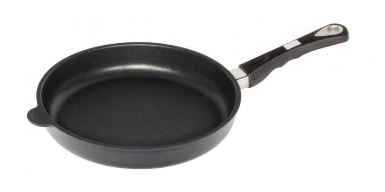 AMT Gastroguss Bratpfanne mittelhoch aus Aluguss für Induktion. Perfekt für klassische Pfannengerichte, oder z.B. Kurzgebratenes und Fischfilets. Das Werkzeug der Deutschen Köche-Nationalmannschaft.